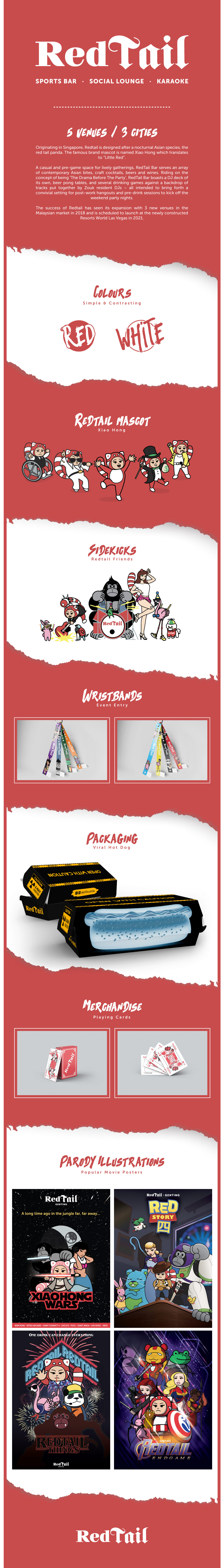 I led the full rebrand of Redtail, overseeing its transformation from Singapore into the Malaysia market. The success of the rebrand supported the brand’s expansion into three distinct venues: Social Lounge, Sports Bar, and Karaoke, all of which I directed creatively from concept to execution. Continued growth and strong brand performance ultimately led to Redtail’s expansion into the Las Vegas market.